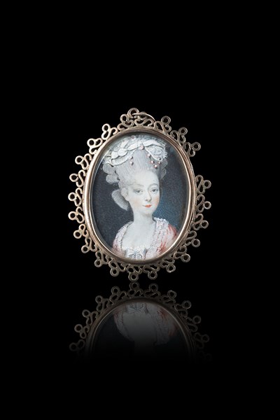 Scuola del secolo XVIII "Ritratto di gentildonna" miniatura ovale su avorio (cm
