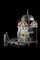 Orologio a "lanterna" in ottone e ferro con montanti laterali a colonna e pinnacoli.