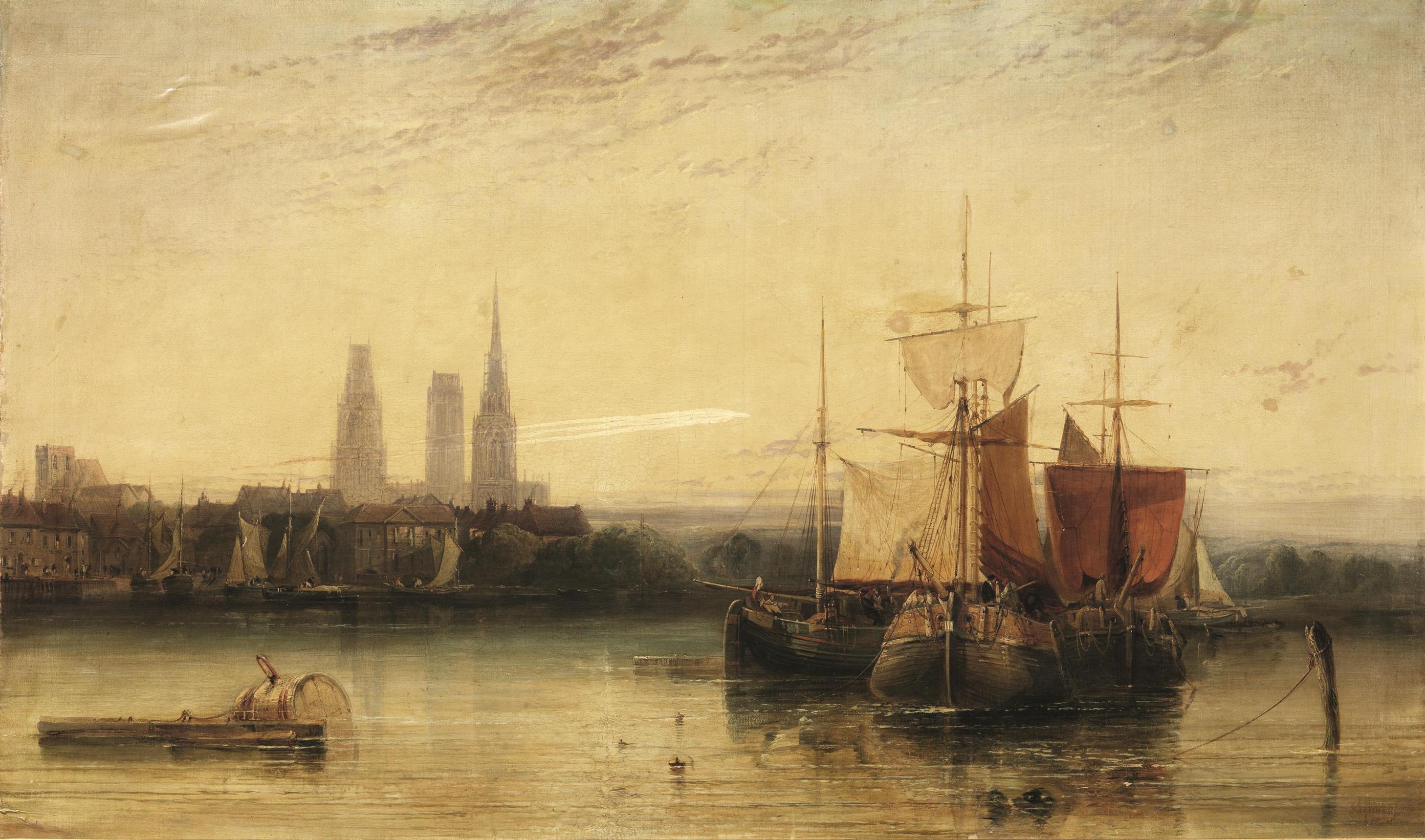 Arthur Joseph Meadows (Londra 1843 - 1907) SCORCIO DI CITTA' FLUVIALE olio su...