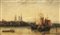 Arthur Joseph Meadows (Londra 1843 - 1907) SCORCIO DI CITTA' FLUVIALE olio su...