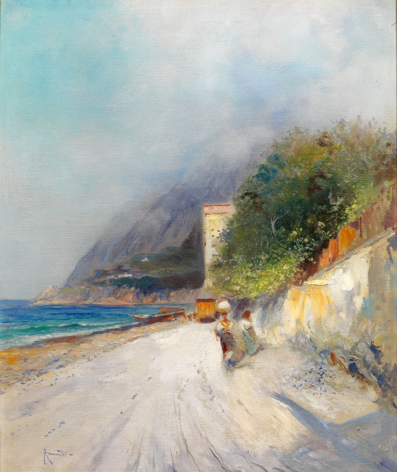 Oscar Ricciardi (Napoli 1864 - 1935) COSTIERA AMALFITANA olio su tela, cm...