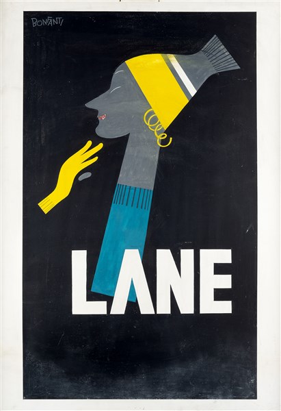 "Lane" unfinished sketch for advertisement, oil on plywood. Singed upper left (cm 99,7x69,4) Framed (defects)