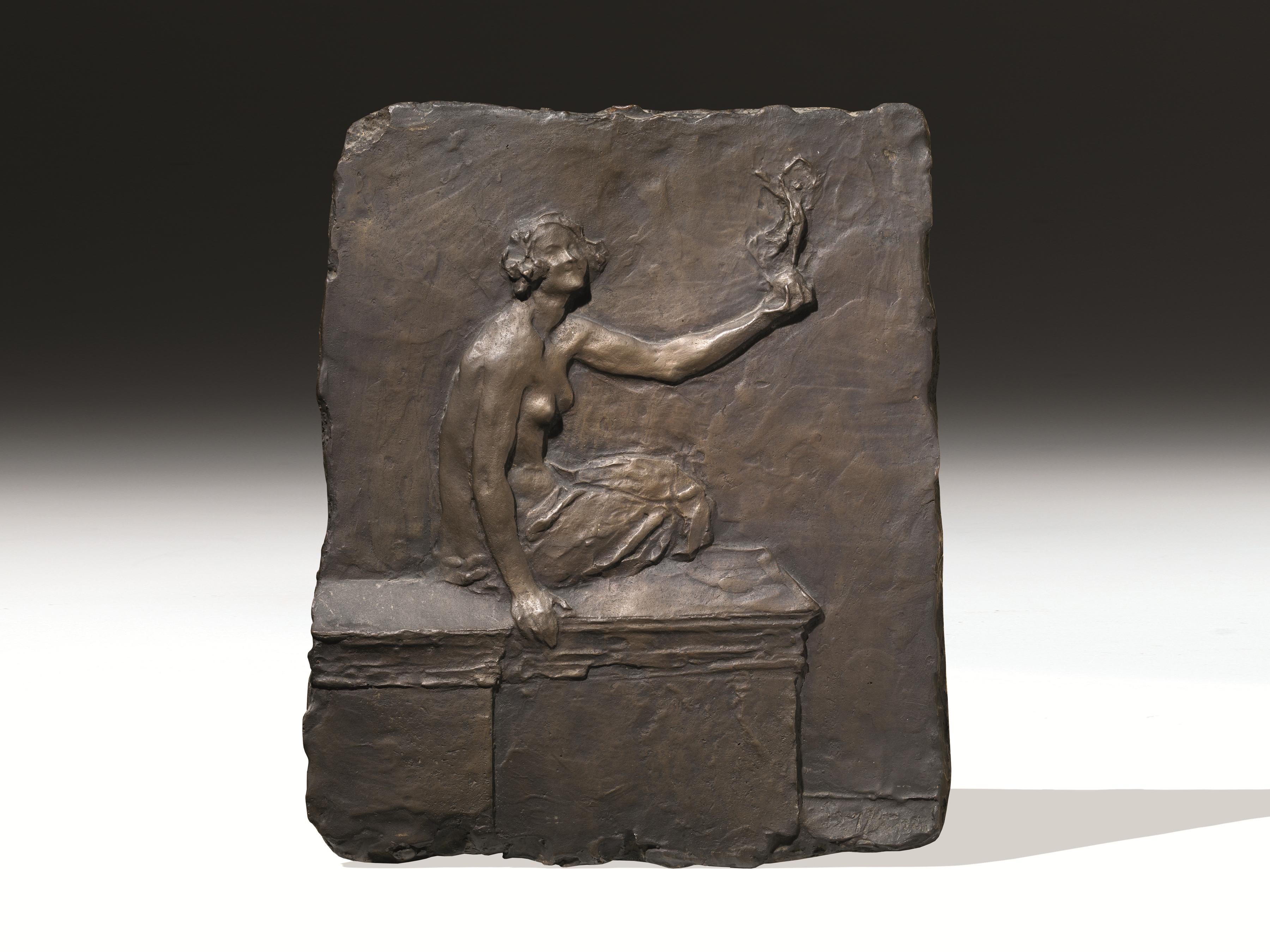 Lot 331 | Ernesto Bazzaro(Milano 1859 - 1937)FIGURA FEMMINILE SEDUTA CON VITTORIA ALATA...
