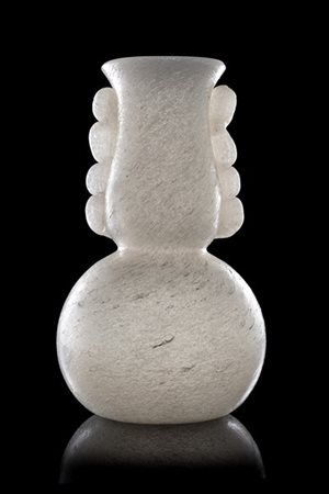 Vaso a morise con corpo globulare e collo a balaustro in vetro pulegoso bianco. Secolo XX (h. cm 27,5) (difetti)