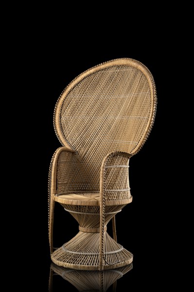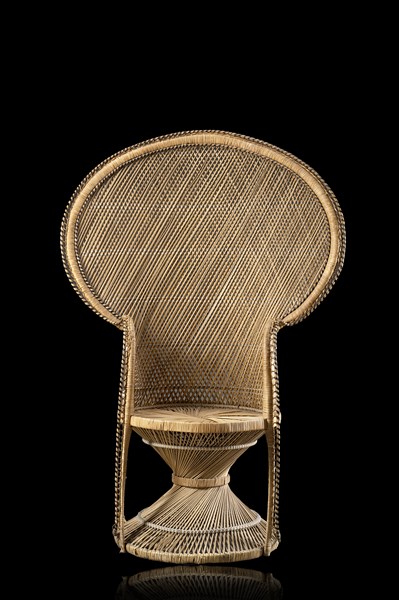 Poltrona "Pavone" in midollo e scortecciato di giunco. Produzione orientale. Se