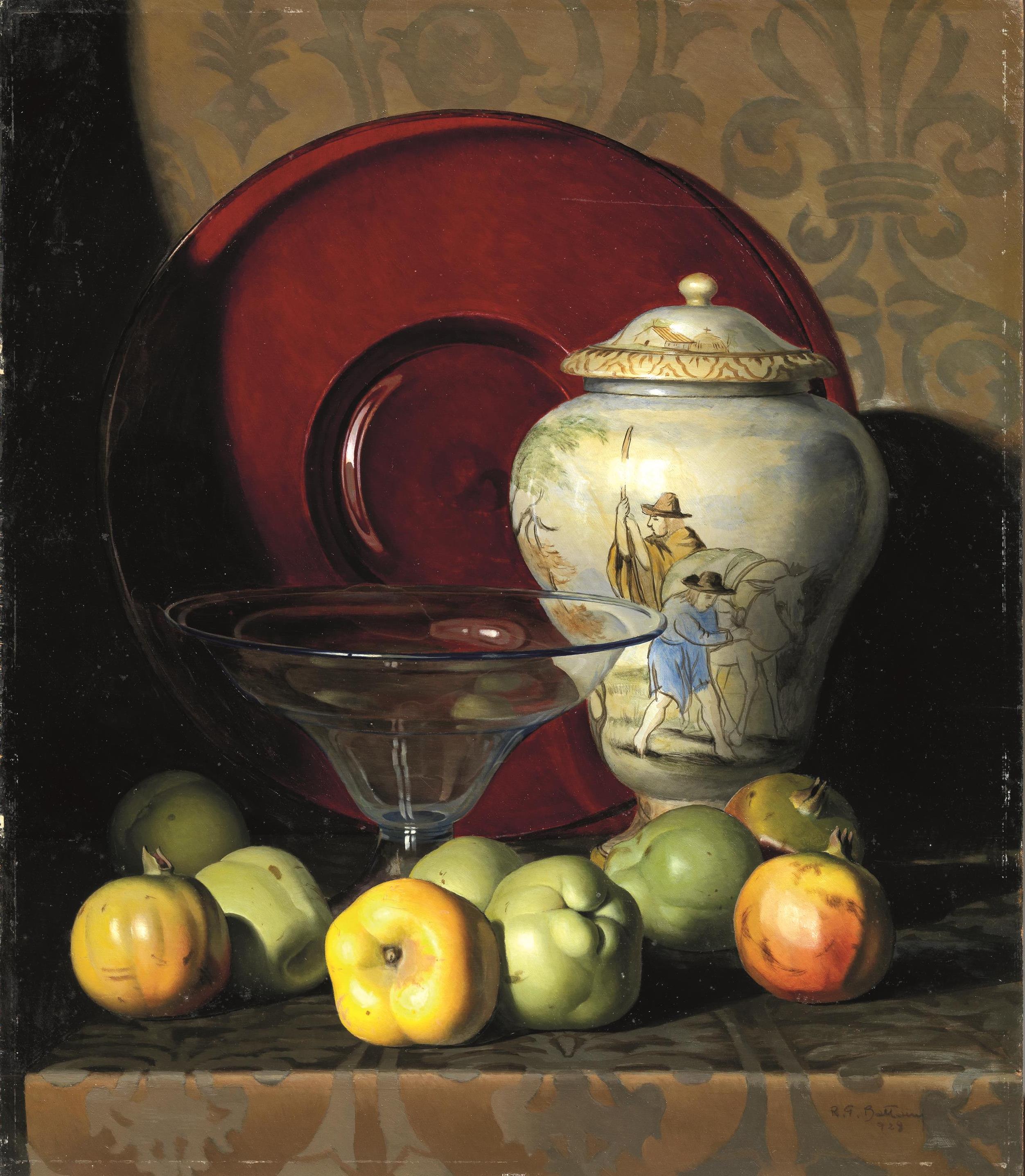 Lot 334 | Rino Gaspare Battaini (Milano 1892 - 1960) NATURA MORTA CON MELE GIALLE E...