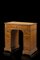 Scrittoio da centro a un cassetto sottopiano e otto nei montanti, fasce intarsiate a motivi geometrici, piano in pelle impressa (cm 80x80x46)