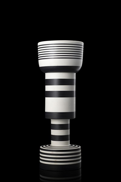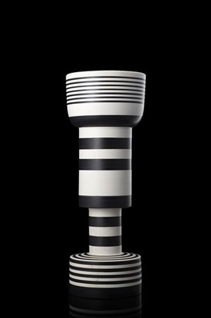 Vaso in terracotta smaltata in nero e bianco con figurazioni geometriche. Manifattura Bitossi, Firenze, 1986. Firmato "SOTTSASS 1986" e con marchio della manifattura. Riedizione dell'originale prodotto nel 1959 (h. cm 47) (lievi difetti)