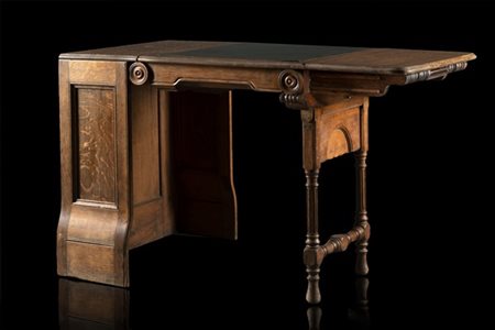 A 19th-century English durmast foldable desk, leather top (123x76x68 cm, closed 33x76x68 cm)