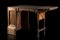 Scrittoio richiudibile in rovere, gambe scanalate riunite da traverse tornite,