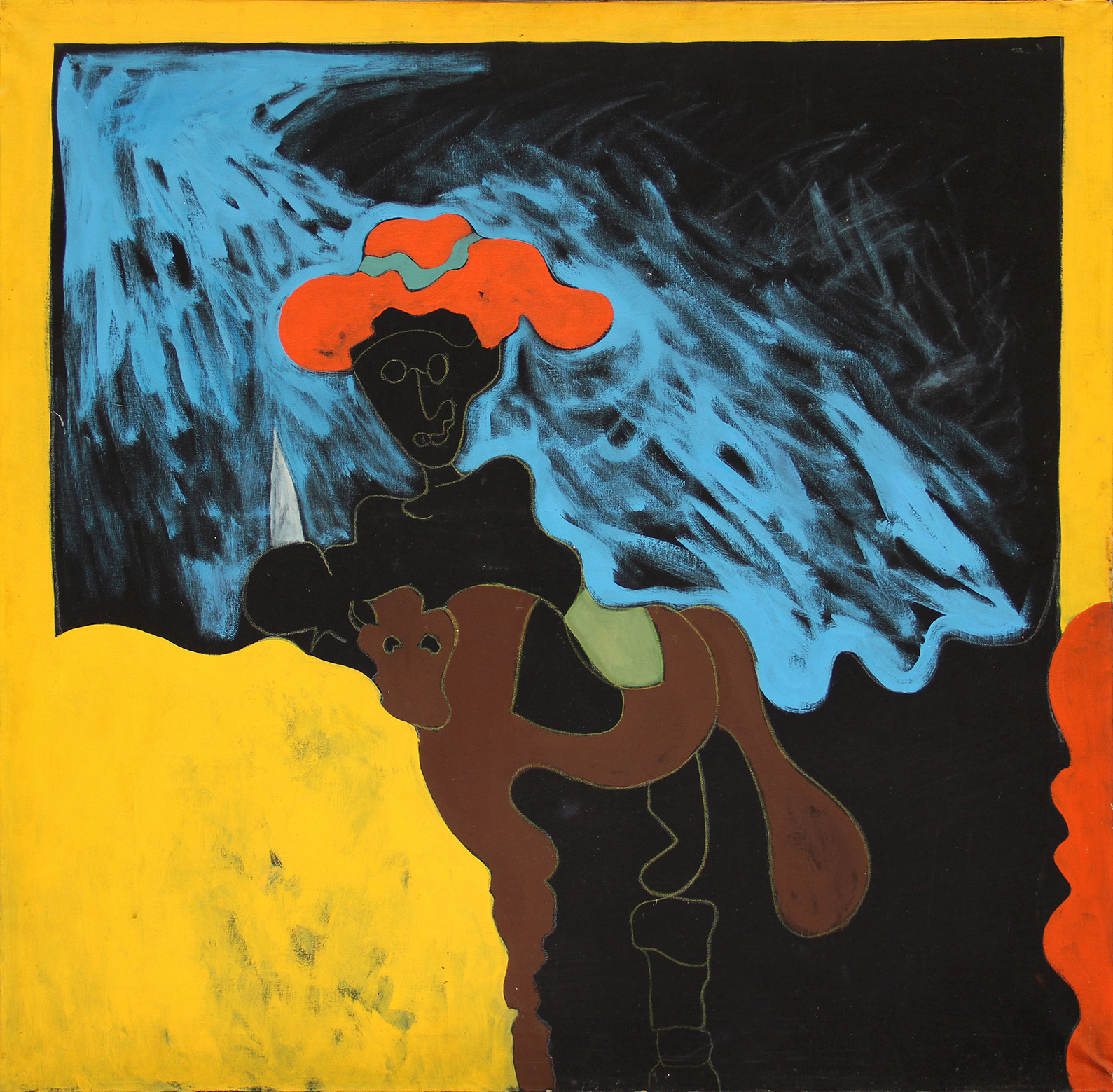 FESTA Tano, Don Chisciotte, 1986, tecnica mista e smalti su tela, cm. 100 x 100. Autentica a cura dell'Archivio delle Opere Tano Festa, con n. B1278/2180, con firma di Anita Festa. . Provenienze:Galleria Accademia, Torino Note:Firma, data "T. Festa, 1986" (al retro)