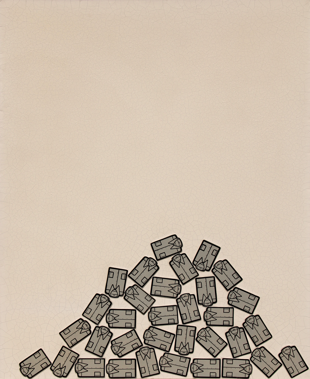 STEFANONI Tino, Le camicie 89, 1969, tecnica mista e rilievi su tavola, cm. 100 x 80. . O. Mignone "Tino Stefanoni. Catalogo ragionato delle opere", Allemandi, Torino 2017, p. 59