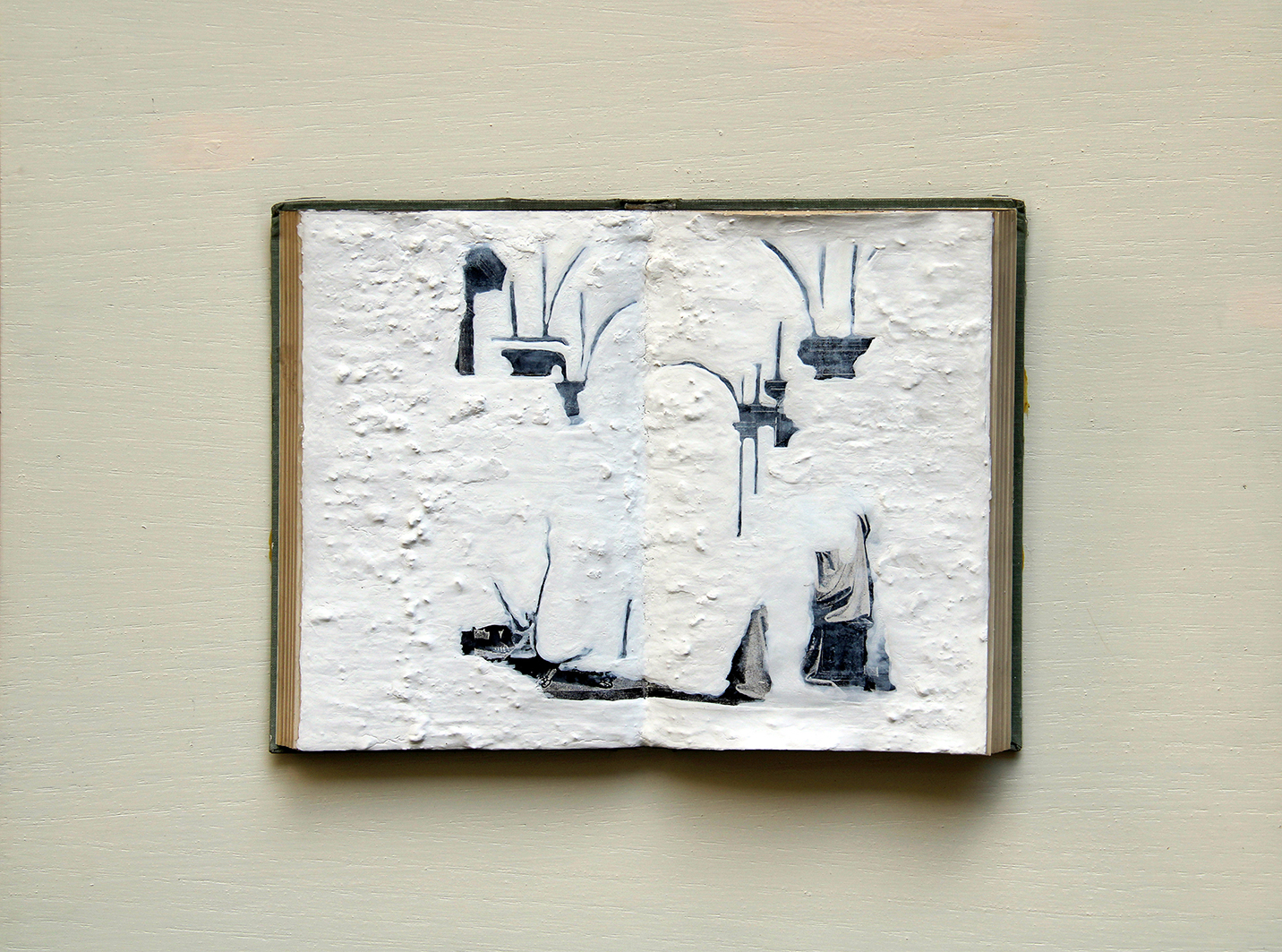 ISGRO' Emilio, Forse il Perugino, 1991, tecnica mista su libro applicato su tavola, cm. 44.5 x 51.5. Autentica dell'artista su fotografia. . Provenienze: Note:La misura è riferita alla tavola