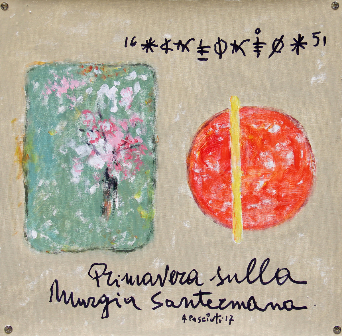 PASCIUTI Antonio, Primavera sulla Murgia Santermana, 2017, olio su tela, cm. 51.5 x 51.5. . . Provenienze: Note:Titolo, firma, data "Primavera sulla Murgia Santermana, A. Pasciuti, '17" (in basso al centro)