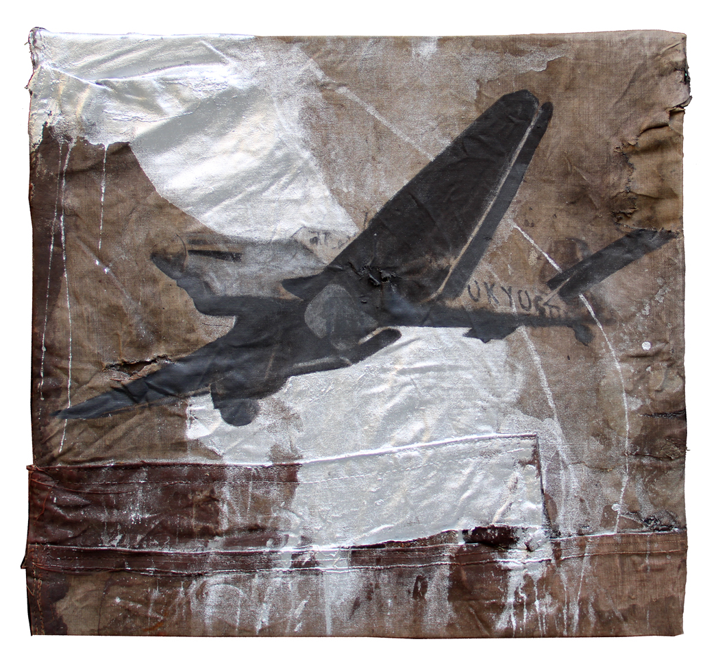 PIGNATELLI Luca, Aereo JV 87, 2010, olio su telone di copertura di vagone ferroviario, cm. 75 x 80. Autentica dell'artista su fotografia, con n. 23042010. . Provenienze:Italian Factory, Milano Note:Firma, luogo, data, titolo "Luca Pignatelli, Milano 2010, Aereo JV 87";