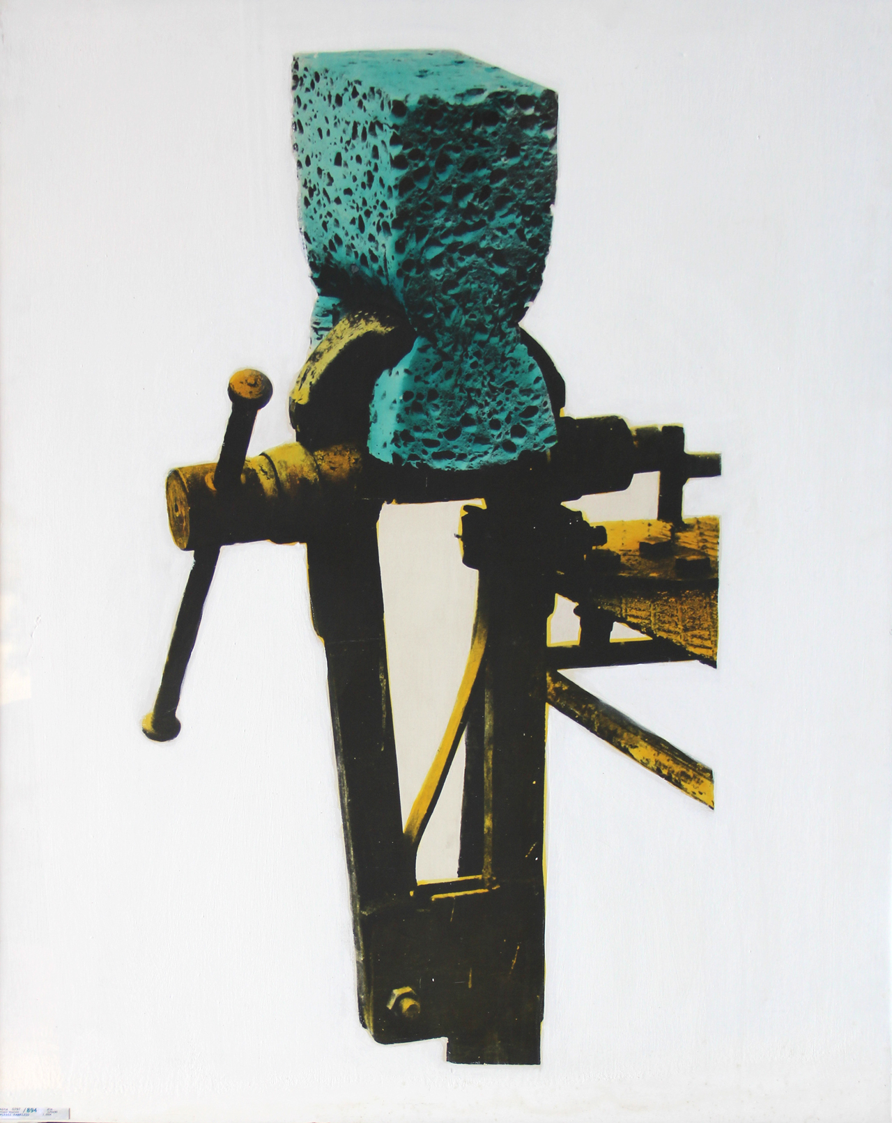 PLESSI Fabrizio, Schiaccia-acqua, 1972, acrilico su tela emulsionata, cm. 120 x 90. Autentica dell'artista su fotografia. . Provenienze: Note:Firma, data, titolo, tecnica, misure "Plessi, 1972, Schiaccia-acqua, acrilico su tela emulsionata, 120x90" (al retro)