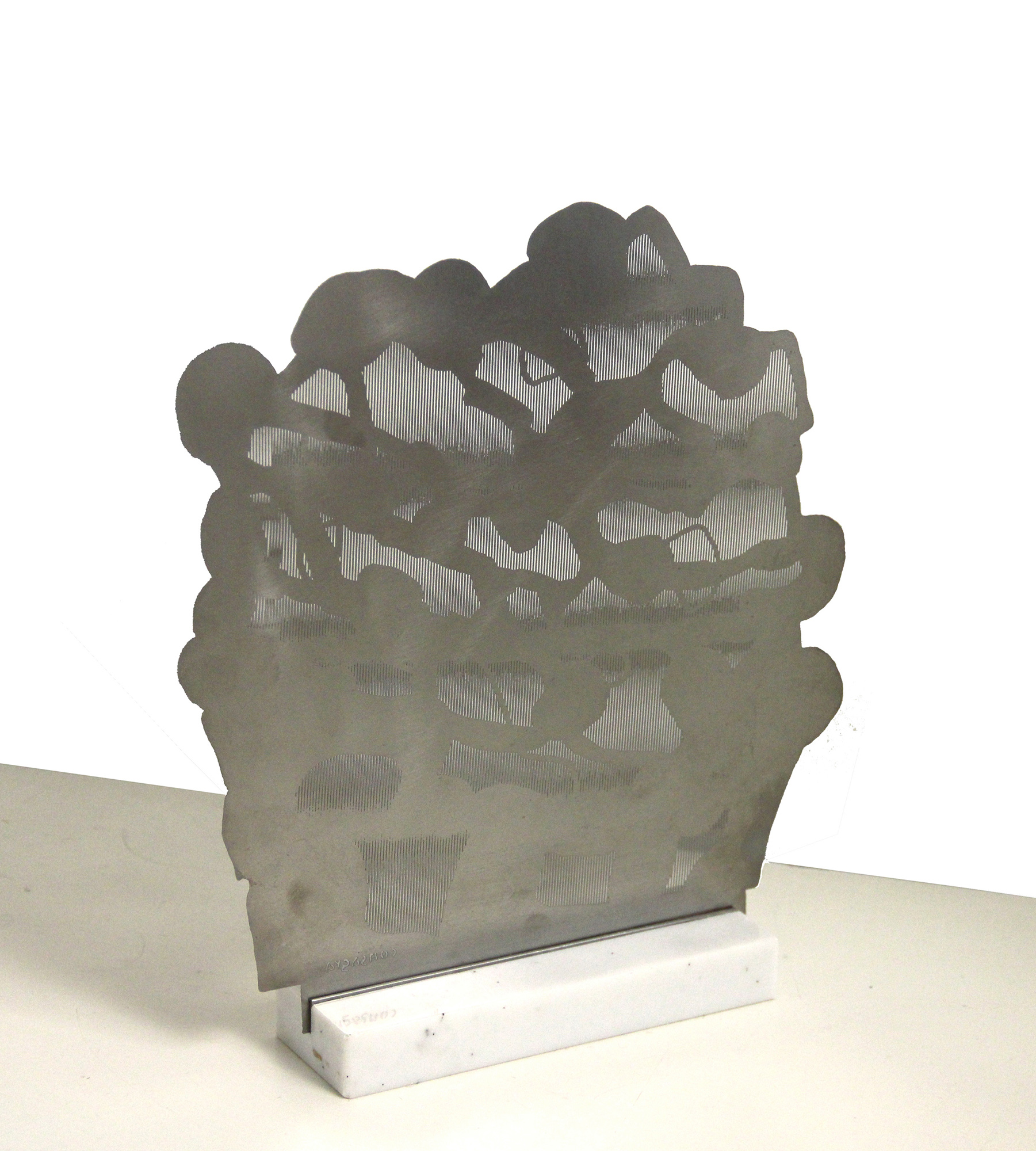 CONSAGRA Pietro, Sottilissima, , lamina di alluminio, cm. 25.5 x 22.5. . . Provenienze: Note:La misura è riferita all'opera compresa della base in marmo