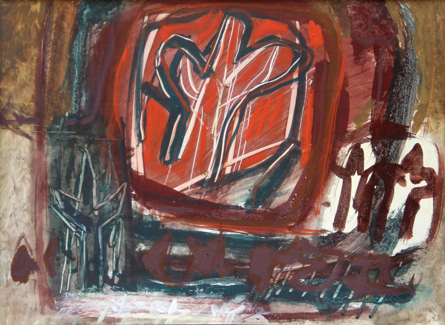 LICATA Riccardo, Senza titolo, 1959, tecnica mista su cartone, cm. 34.5 x 49.5. Autentica dell'Archivio Generale delle opere di Riccardo Licata, con rep. n. 984. . Provenienze:Galleria Meeting, Mestre
