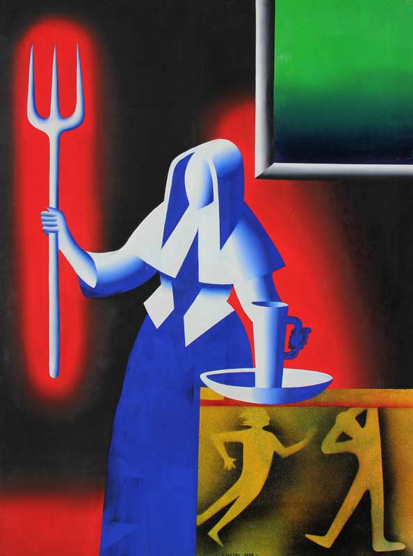 Mark KOSTABI Los Angeles 1960 Tools of consumption, 1988 Olio su tela cm 122...