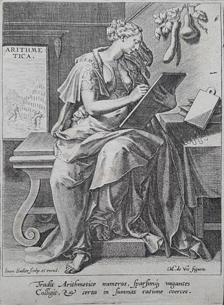 Johann Sadeler (1550-1600) da Martin de Vos (1532-1603)<br>ARITHMETICA (Le Sette Arti Liberali)
