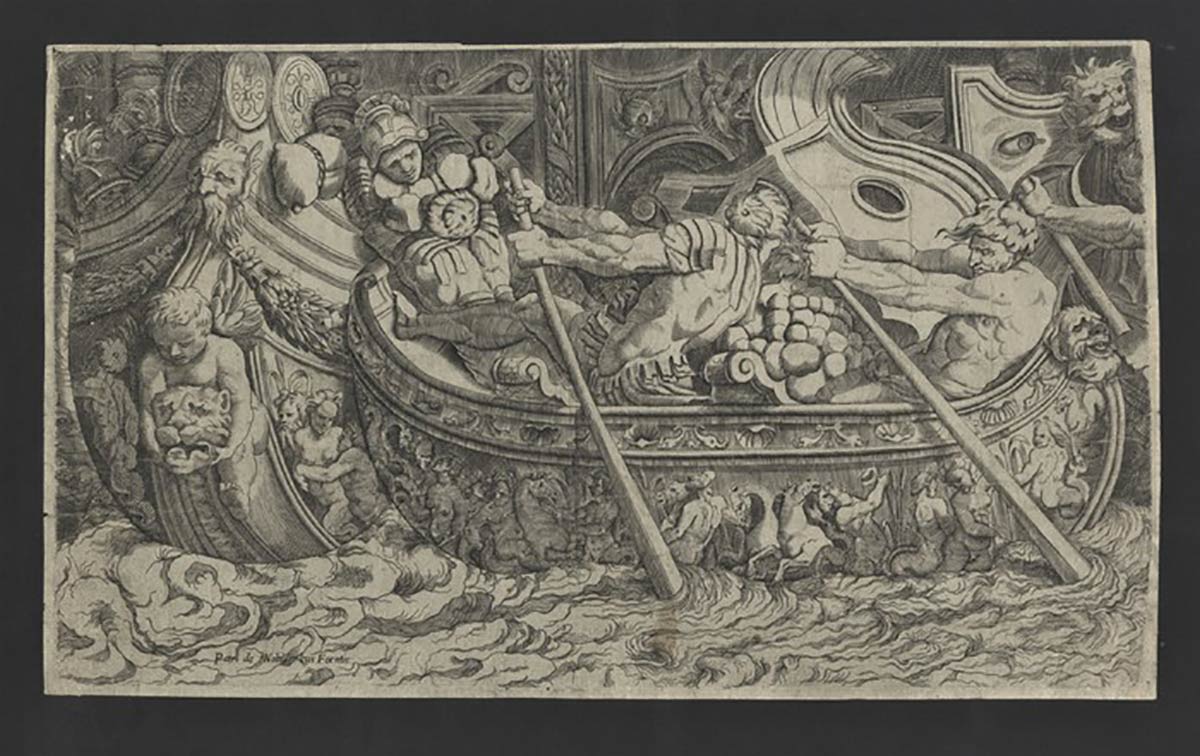 tratta dai fregi della Colonna Traiana dai soggetti di Polidoro da Caravaggio, stampata a Roma da Pietro Nobili, 1585 ca