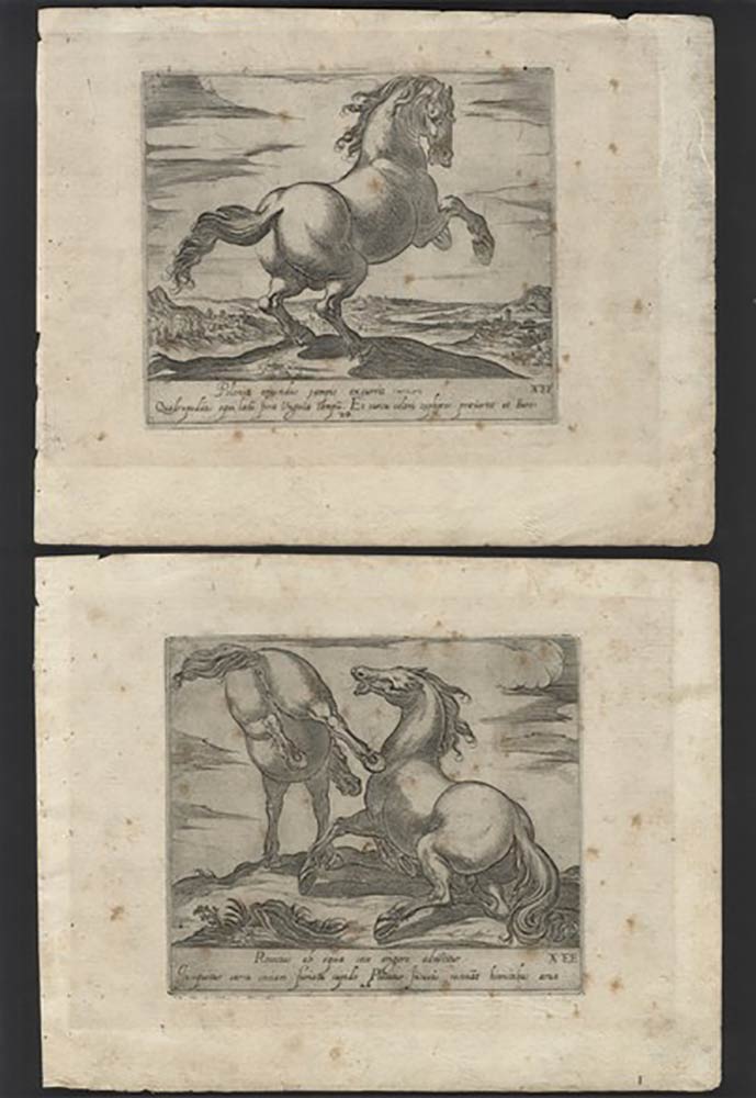 coppia di acquaforti di Antonio Tempesta (1555?-1630) stampate a Roma nel 1590; monogramma in lastra in basso a destra