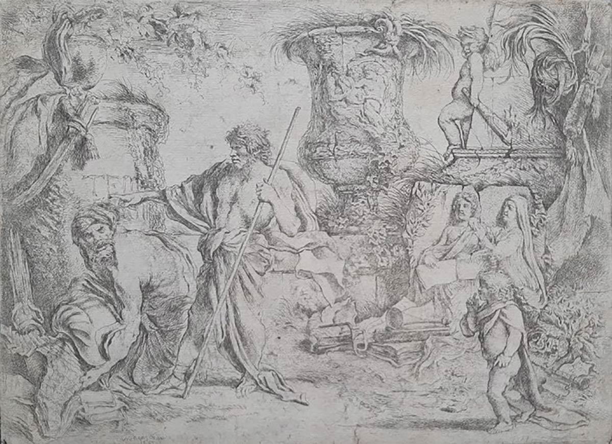 Buon esemplare, margini stretti (vedi Paolo Bellini, L’opera incisa di Giovanni Benedetto Castiglione, Milano, Comune di Milano Ripartizione Cultura e Spettacolo, 1982, pp. 167-168 n. 63).