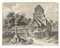 L'impressione molto bella e fresca che rappresenta una vecchia chiesa in un paesaggio naturale, con alcune figure in primo piano.