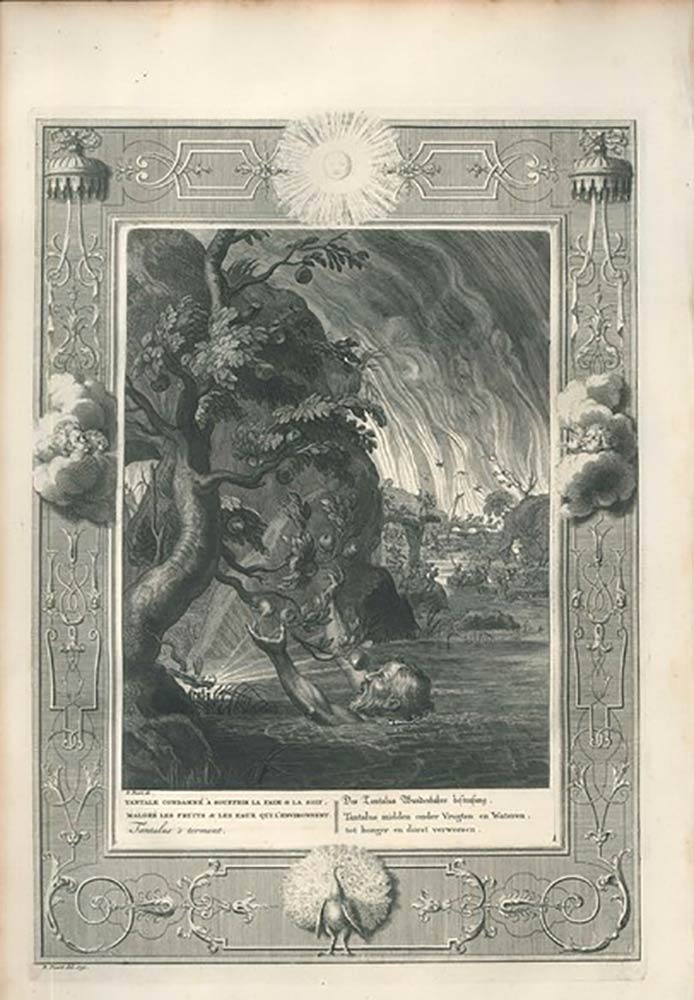 Acquaforte su carta vergellata, rappresentante il mito greco del tormento di Tantalo.
