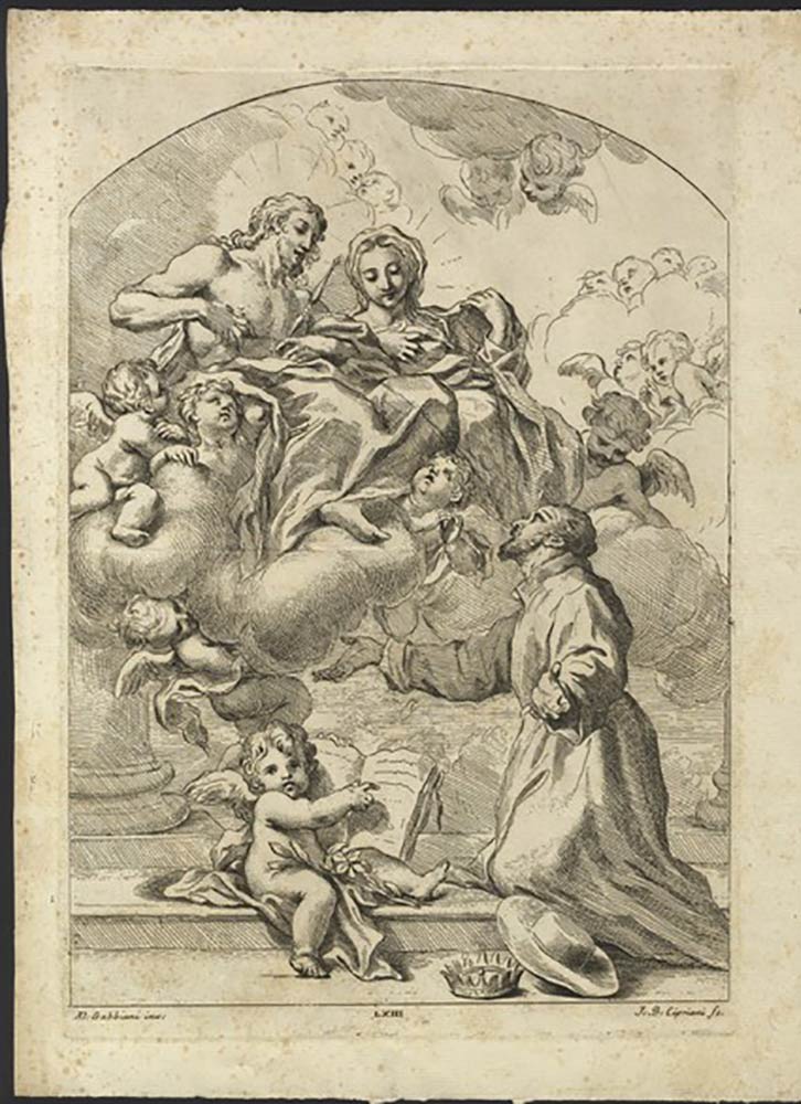 acquaforte di G. B. Cipriani (1727-1785) tratta dall'opera Raccolta di cento pensieri diversi di Anton Domenico Gabbiani, pittor Fiorentino … di Anton Domenico Gabbiani ( 1652-1726) tav. LXIII