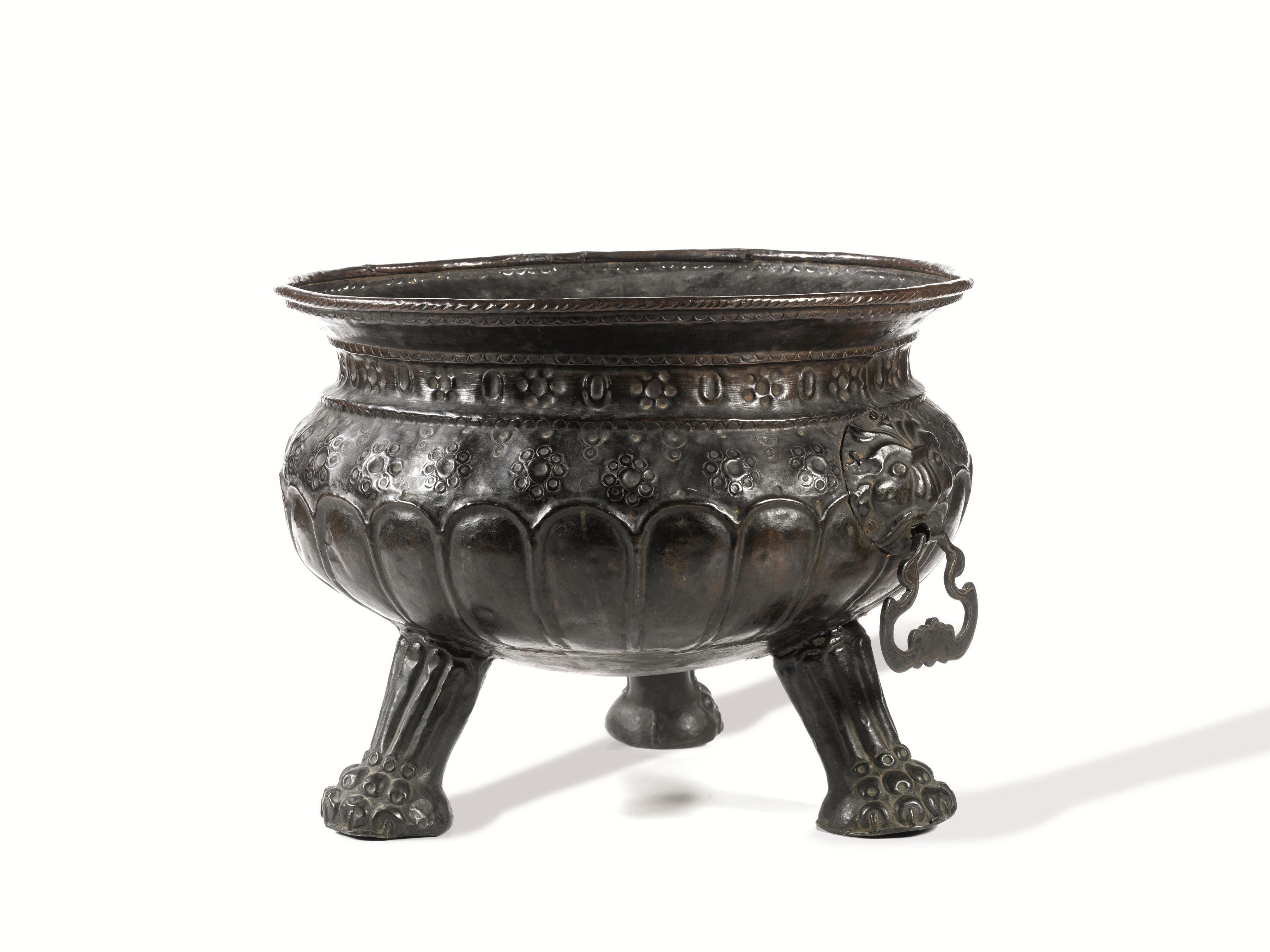 Lot 4 | Grande braciere, sec. XVII, in rame sbalzato poggiante su tre piedi a zampa...