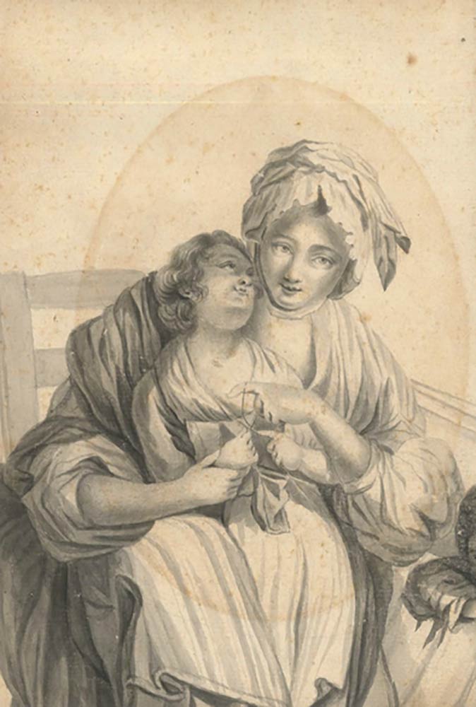 Tempera in bianco e nero su cartone realizzata da Henri Joseph Dubouchet (1833-1909). Questa opera moderna, rappresentante la Madonna con Gesù bambino in una posa intima, fu realizzata con un tocco spiritoso. In ottime condizioni, salvo fioritura diffusa e lieve ingiallimento della carta al centro. Questi difetti non influiscono sull'immagine.