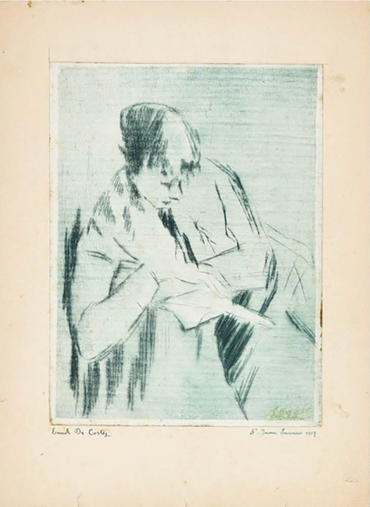 Opera originale realizzata nel 1917. Pastello verde su carta. Datata e firmata in basso a destra. Iscrizione nell'angolo inferiore sinistro. Il foglio presenta altri disegni sul retro. Ottime condizioni.