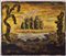 Tempera su cartoncino realizzata nel XX secolo. Paesaggio bellissimo e colorato con sfumature fantastiche, sullo sfondo visibile una struttura tra gli alberi, forse un tempio. Questo artista anonimo realizzò l'opera con una moltitudine di sfumature e un cielo dorato. Buone condizioni, i margini presentano cadute di colore.