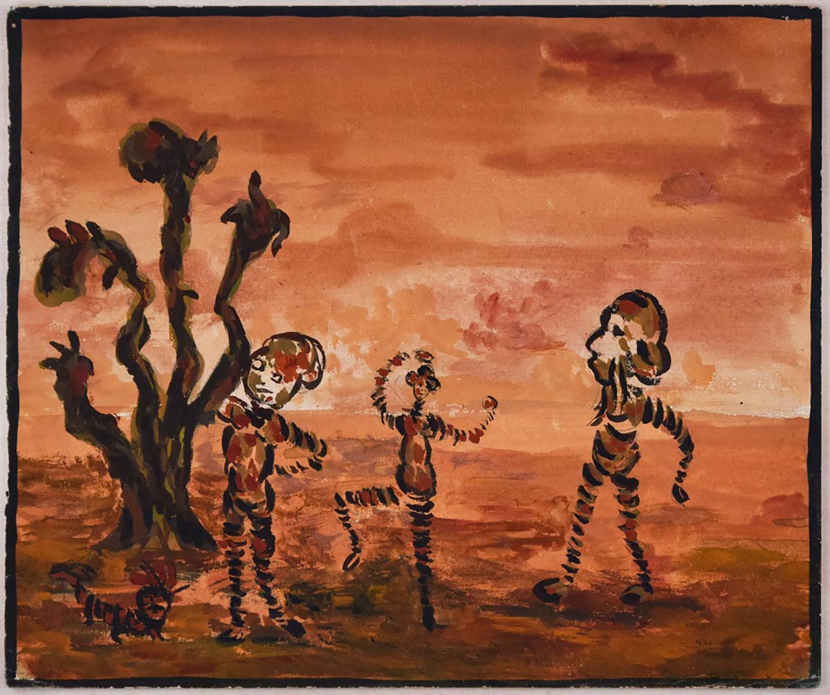 Composizione ricca di colori caldi e dorati e animata da bizzarre figure realizzate con rapidissime pennellate.