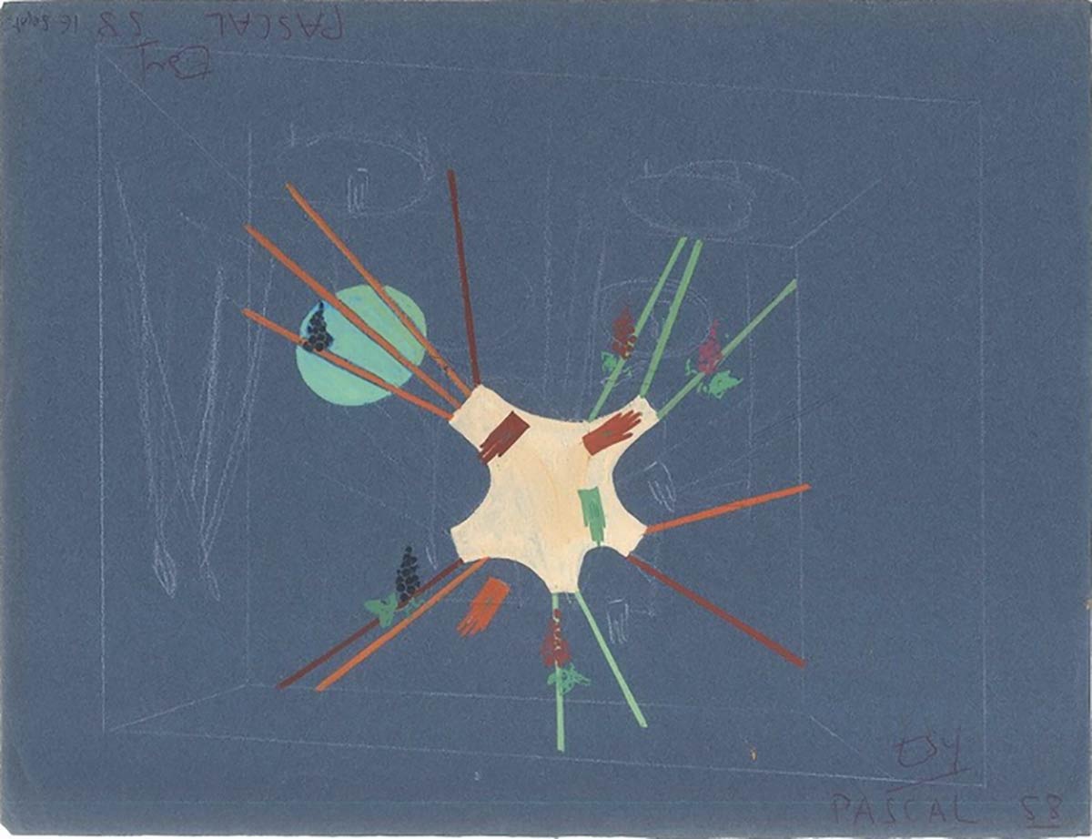 Opera d'arte originale realizzata da Esy Beluzzi nel 1958. Tempera su carta nera. Firmata e datata a penna sia in basso a destra che in alto a sinistra. Buone condizioni.