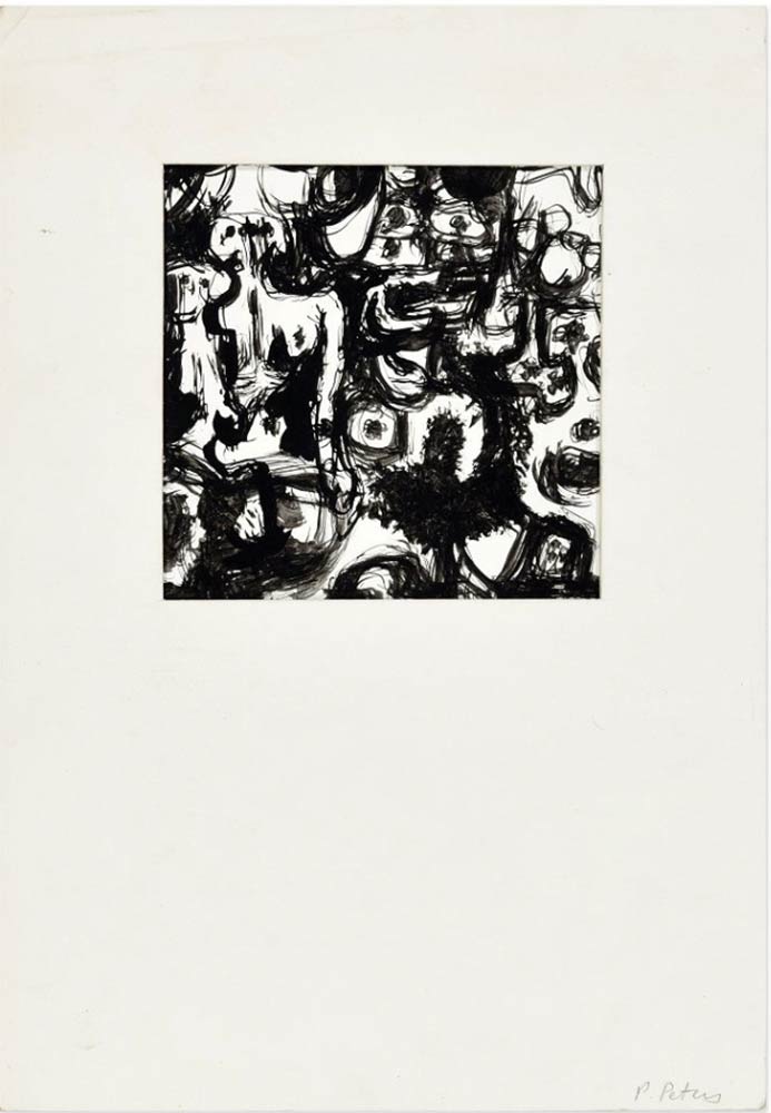 Opera originale realizzata da Paul Peters nella seconda metà del XX secolo. Inchiostro nero su cartoncino. Firmata a matita in basso a destra: P. Peters. Passepartout in cartone rigido incluso. Condizioni molto buone.