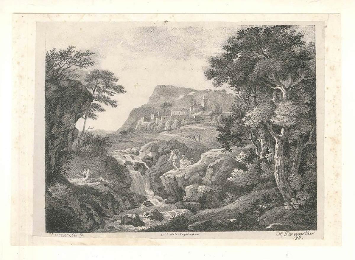 Opera realizzata dall'artista francese Henri Parmentier d'après Zuccarelli nel 1821. Litografia originale su carta. Passepartout incluso. Prova d'autore ad inchiostro di china. Firmata in basso a destra. Buone condizioni, salvo qualche lieve fioritura.