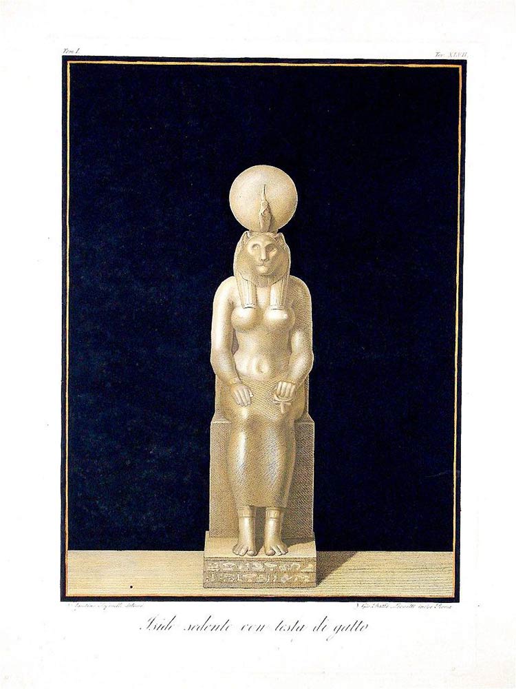 “Iside seduta con testa di gatto” (Tav. XLVII, Vol. I).