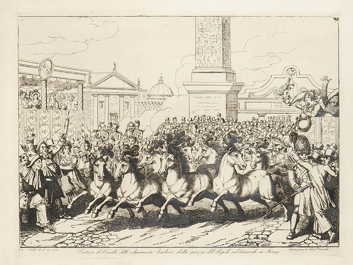 Partenza de' cavalli detti volgarmente barberi, dalla piazza del Popolo nel Carnevale di Roma