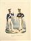 Titolo al centro del margine inferiore. "Lett. Foudraz" nel margine inferiore destro. In condizioni molto buone salvo lieve fioritura e due piccoli fori nel margine superiore, e consueto brunito ai margini. Interessante litografia a colori rappresentante due militari in divisa della Brigata Piemonte.