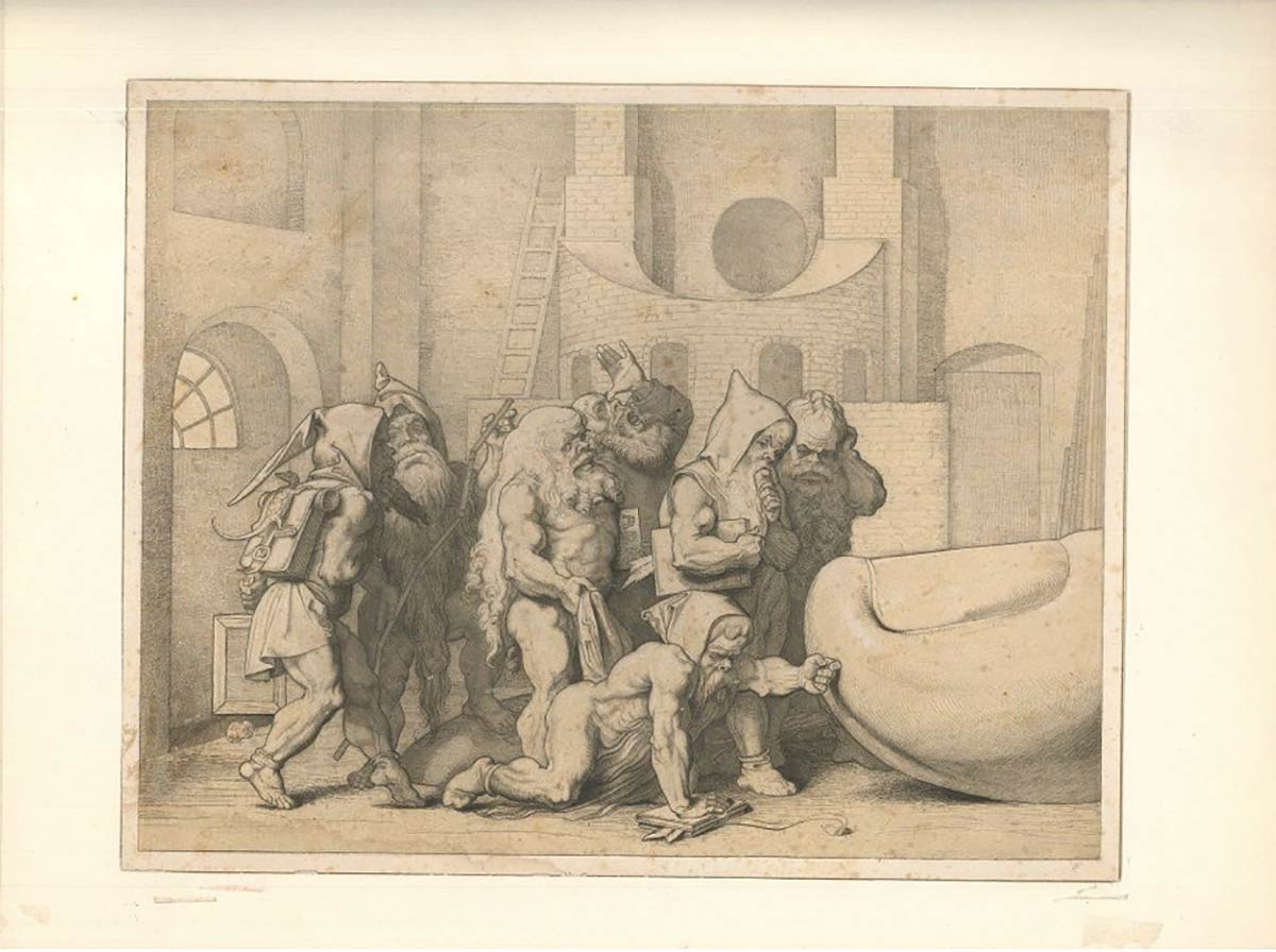 "La Légende Des Gnomes De Bavière" è un'originale incisone a bulino realizzato da Carl Friedrich Mayr (1823 - 1884) da Moritz von Schwind.