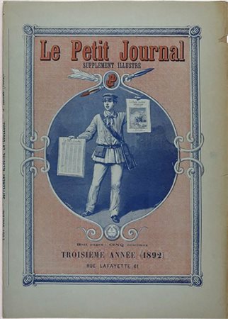 Poster stampato originale realizzato nel 1892. Buone condizioni salvo le abrasioni sui margini. Il poster è tratto da "Le Petit Journal". Il foglio è illustrato con la figura di un giovane venditore di giornali. Isscrizioni "Le Petit Journal Supplément Illustré" e "Troisième anée (1892)" sul margine superiore.