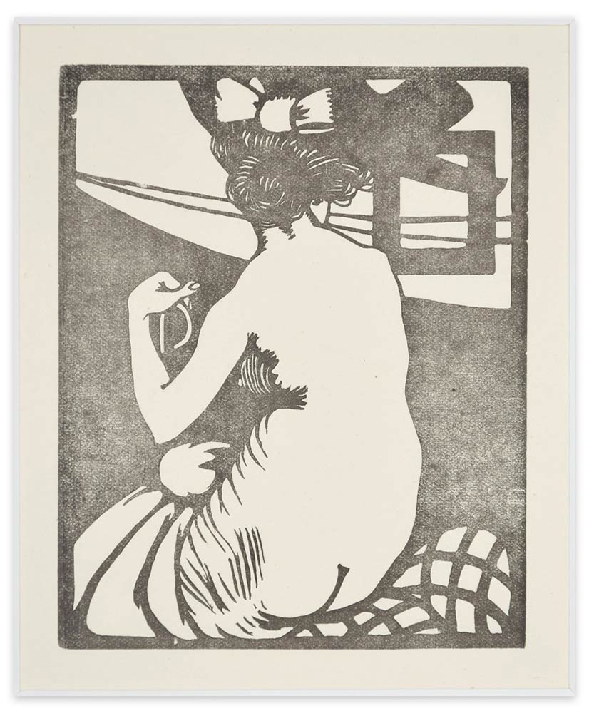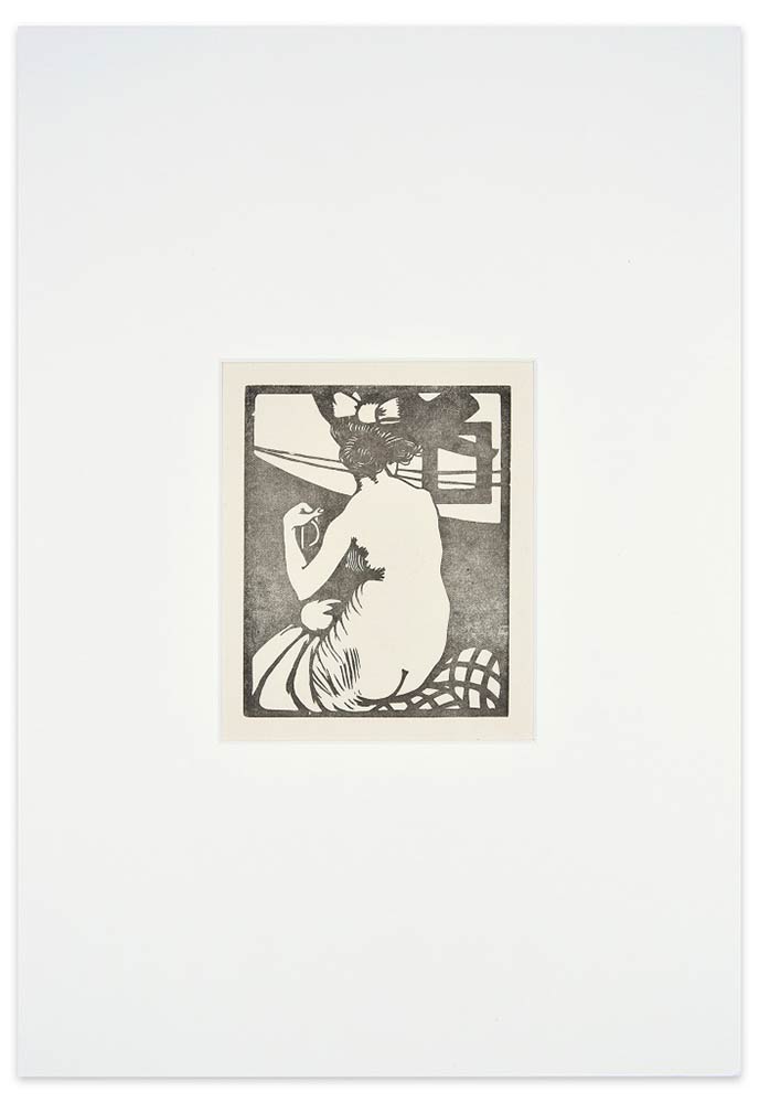 La Modella è una bellissima xilografia originale in bianco e nero su carta color crema di Fabriano P., realizzata nel 1914 dall'artista belga René Leclercq.