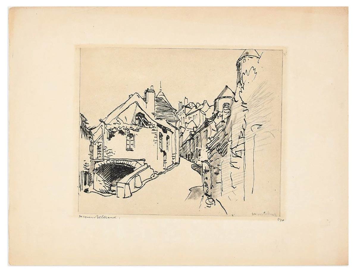 Opera originale realizzata da Jacques Beltrand nei primi decenni del XX secolo. Acquaforte su carta. Firmata a matita dall'artista in basso a sinistra. Firmata su lastra in basso a destra. Numerata a matita in basso a destra. Prima edizione di 30 esemplari. Ottime condizioni.