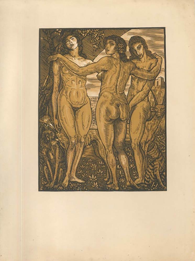 Rappresenta le tre grazie con un'incredibile abilità tecnica del bulino. In ottime condizioni, salvo una leggera piega sul margine inferiore destro.