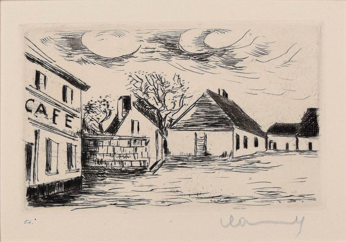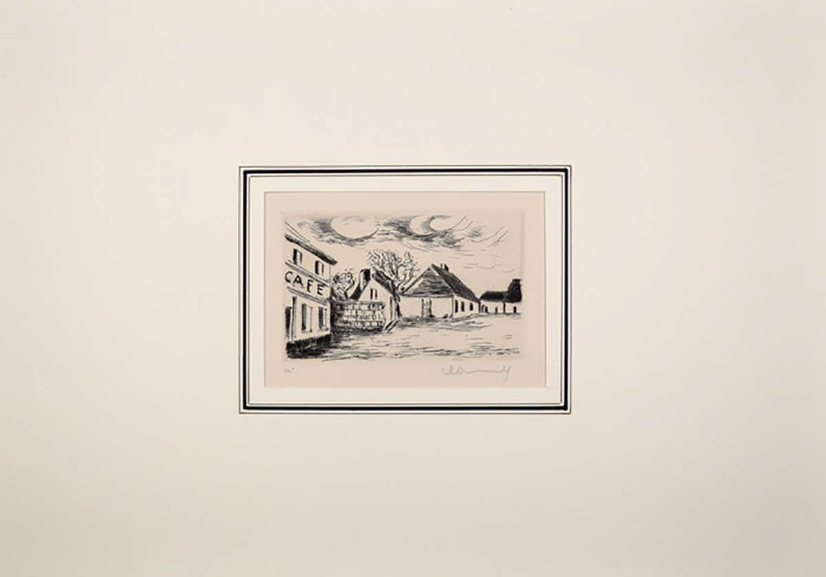 Puntasecca e acquaforte originale. Firmata a mano. Dalla suite: "Visage de Maisons".