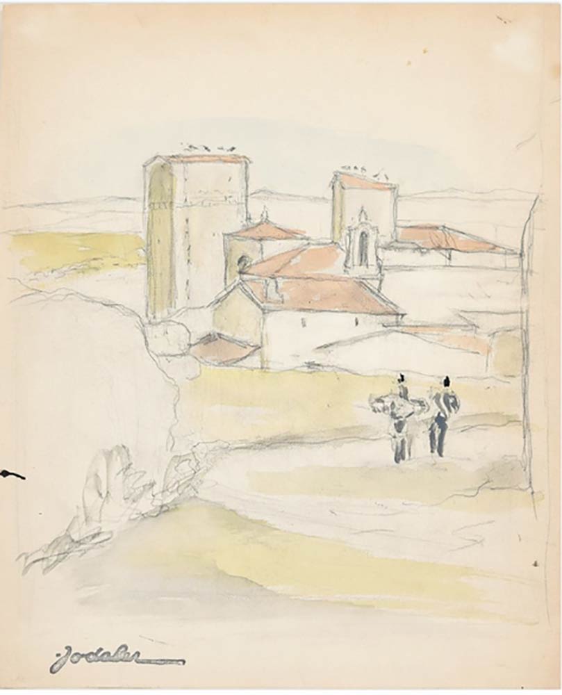 Opera realizzata da Emmanuel Charles Jodelet nella metà del XX secolo. Acquarello e matita su carta. Firmata a mano in basso a sinistra: Jodelet. Il timbro originale di Emmanuel Jodelet Vente presente sul retro del foglio. Condizioni molto buone.