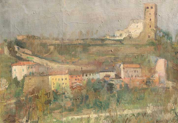 Giovanni BARBISAN Treviso 1914 - Orbetello 1988 Paesaggio, 1940 Olio su tela cm 40 X 60 Firma ‘Barbisan’ (in basso a sinistra)
