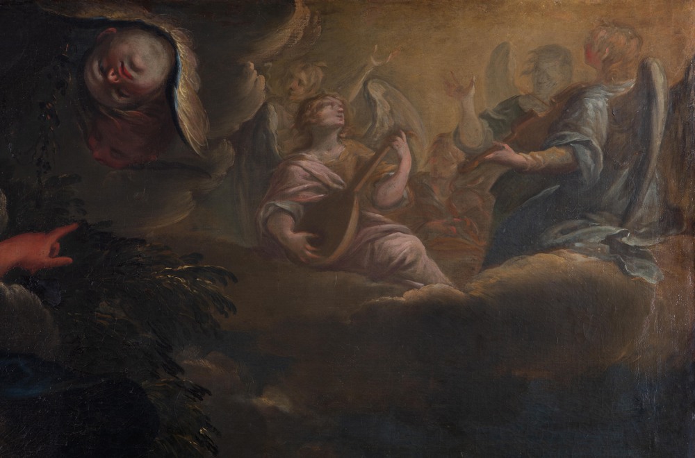 Proveniente da nobile famiglia lombarda, la notevole tela va registrata come espressione superlativa del secondo Seicento milanese. L'opera gelosamente custodita non è mai stata studiata e mostra a nostro giudizio due marcate influenze. La prima ci porta verso Filippo Abbiati, pittore dall'ampio bagaglio formativo che vedeva associate la scuola veneta e genovese. Di queste ritroviamo la vivacità del chiaroscuro e l'estro dinamico compositivo che ricorda da una parte Antonio Zanchi dall'altra Valerio Castello. Il secondo filone d'indagine ci porta verso Giovanni Stefano Danedi detto Il Montalto, elegante e compito pittore che al dinamismo compositivo preferiva dare forme di plastica monumentalità alle sue figure, talvolta accompagnate da quinte paesaggistiche dai toni cupi e serali